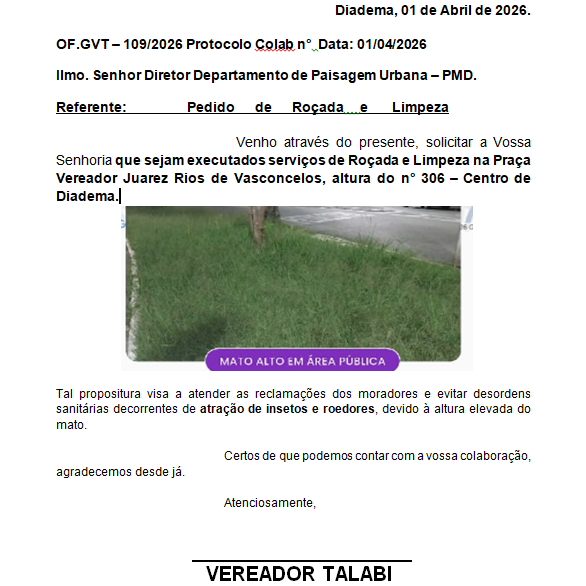 Atualmente, o local vem sendo utilizado de forma irregular para descarte de lixo, diversos, o que tem causado acúmulo de sujeira, mau cheiro e a possível proliferação de insetos e animais nocivos à saúde pública, inclusive moradores de rua usando pra montar barracas. Ressaltamos que a praça é um espaço destinado ao lazer e convivência da população, sendo frequentada por moradores, crianças e famílias da região. A situação atual compromete a segurança, a saúde e o bem-estar da comunidade.