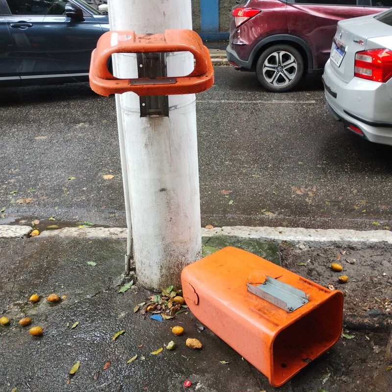 Solicito providências para reparo ou intimação do responsável para fazê-lo.
