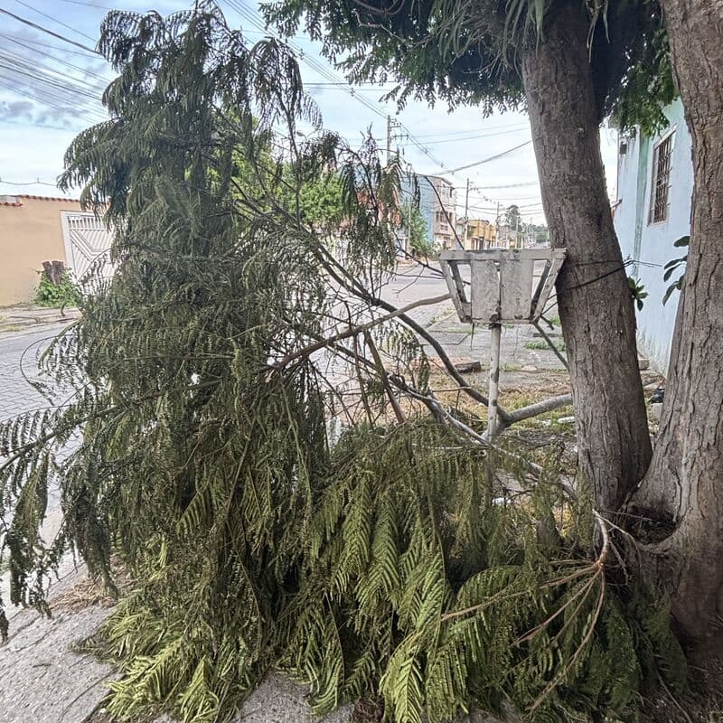árvore caída na via pública Fagundes Oliveira 1801 bairro Piraporinha