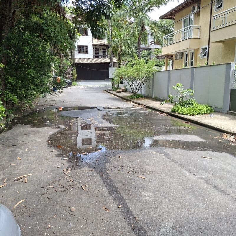 Infiltração de agua que escorre das escadas na viela.