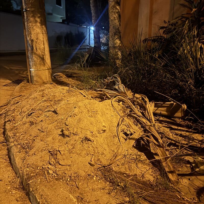 As árvores apresentam sinais visíveis de comprometimento estrutural, como inclinação acentuada, raízes expostas, tronco danificado, o que pode ocasionar acidentes, colocando em risco a segurança de moradores, pedestres e veículos que transitam pelo local.