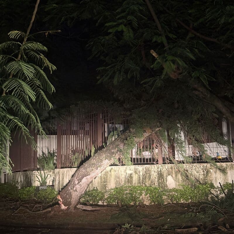 arvore caiu sibre oa fios e no muro da casa