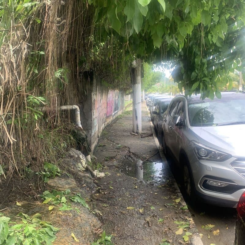Sirvo-me do presente para solicitar q VSª reparo em Calçada na Av. Prefeito Silvio Picanço, Charitas, na altura da casa de festas Maison Cascade, pois inviável a sua utilização. A calçada está repleta de buracos e vazamentos, o que piora em dias chuvosos. Além disso, a mata ultrapassa o muro, o que nos obriga a andar de cabeça baixa, olhando para o chão para evitar quedas. Impossível um idoso ou um cadeirante, ou carrinho de criança utilizar a referida calçada.