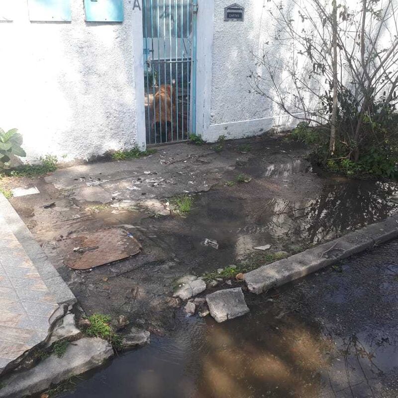 Boeiro com vazamento interno observação quando chove vem muita água e está transbordando e infiltrando dentro da casa do morador danificando seu imóvel a Sabesp já veio e disse que o problema é da prefeitura a calçada está danificada Ponto de Referência: olmeiro